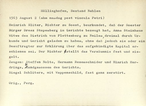 | Bestand | Nehlen, Urkunden | alle Regesten |