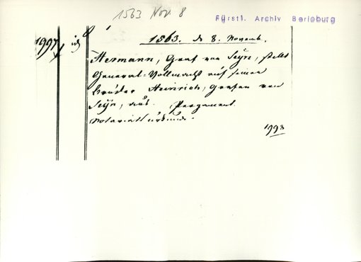 | Datum | 1563-11-08  Suche DWUD  Suche Portal | Datum Bestand:  früher