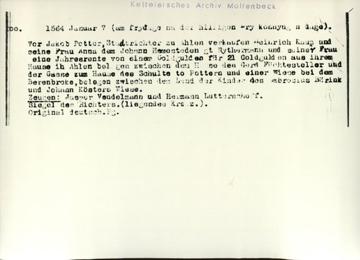 | Bestand | Möllenbeck, Haus, Urkunden | alle Regesten |
