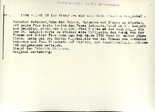 | Bestand | Möllenbeck, Haus, Urkunden | alle Regesten |