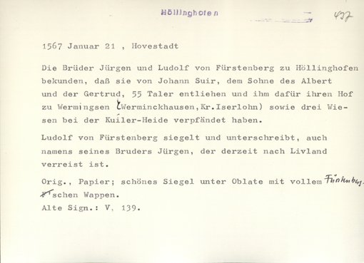 | Bestand | Höllinghofen, Urkunden | alle Regesten |