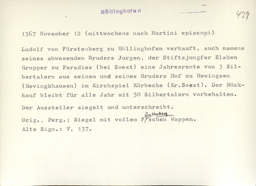 | Bestand | Höllinghofen, Urkunden | alle Regesten |