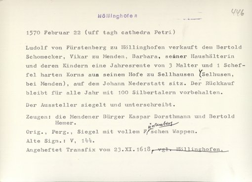 | Bestand | Höllinghofen, Urkunden | alle Regesten |