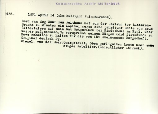 | Bestand | Möllenbeck, Haus, Urkunden | alle Regesten |