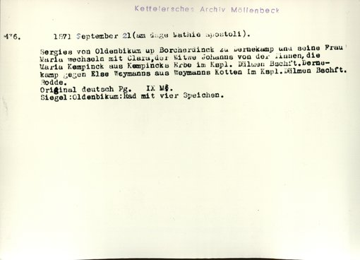 | Bestand | Möllenbeck, Haus, Urkunden | alle Regesten |