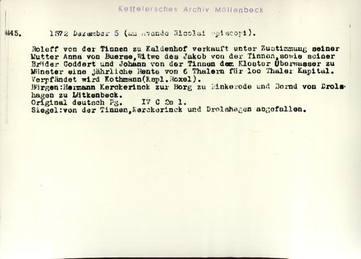 | Bestand | Möllenbeck, Haus, Urkunden | alle Regesten |