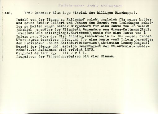 | Bestand | Möllenbeck, Haus, Urkunden | alle Regesten |