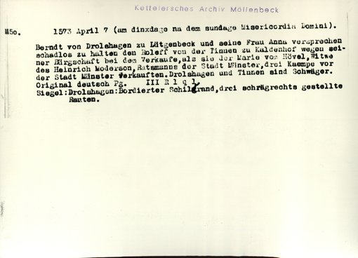 | Bestand | Möllenbeck, Haus, Urkunden | alle Regesten |