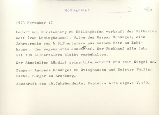 | Bestand | Höllinghofen, Urkunden | alle Regesten |