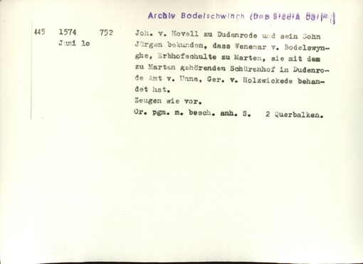 | Bestand | Bodelschwingh, Urkunden | alle Regesten |