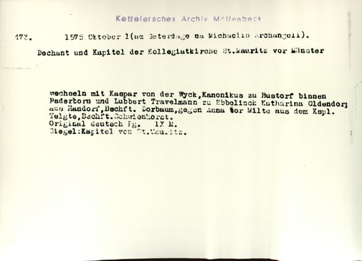 | Bestand | Möllenbeck, Haus, Urkunden | alle Regesten |