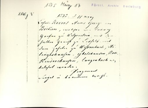 | Archiv | Berleburg, Fürstliches Archiv |