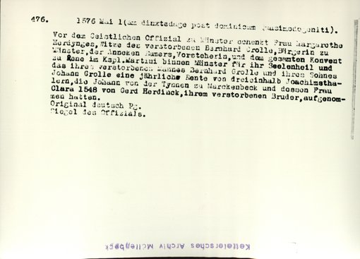 | Bestand | Möllenbeck, Haus, Urkunden | alle Regesten |