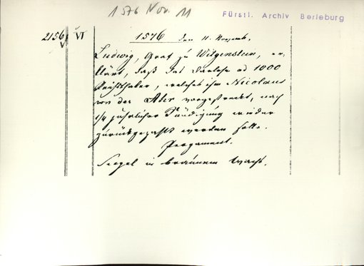 | Archiv | Berleburg, Fürstliches Archiv |