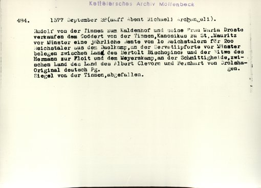 | Bestand | Möllenbeck, Haus, Urkunden | alle Regesten |