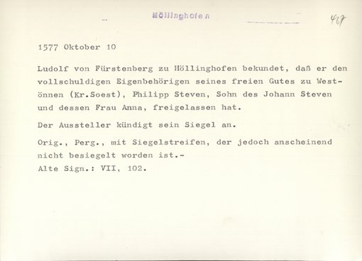 | Bestand | Höllinghofen, Urkunden | alle Regesten |