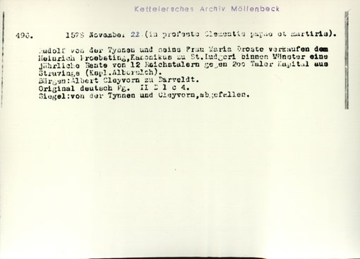 | Bestand | Möllenbeck, Haus, Urkunden | alle Regesten |