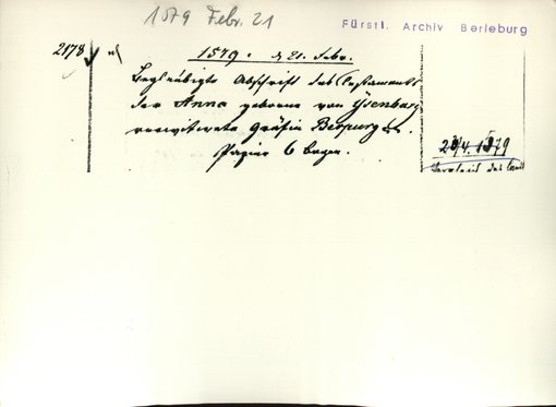| Archiv | Berleburg, Fürstliches Archiv |