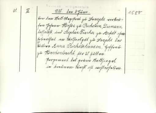 | Benutzungsort | Fürstliches Archiv zu Sayn-Wittgenstein-Hohenstein | |||||||