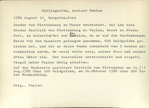 | Bestand | Nehlen, Urkunden | alle Regesten |