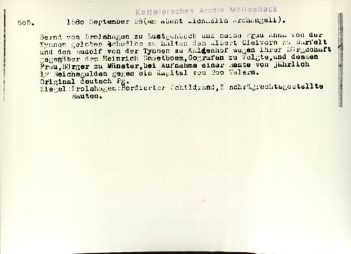 | Bestand | Möllenbeck, Haus, Urkunden | alle Regesten |