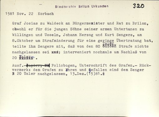 | Benutzungsort | Stadtarchiv Brilon | |||||||