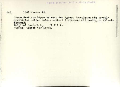 | Bestand | Möllenbeck, Haus, Urkunden | alle Regesten |