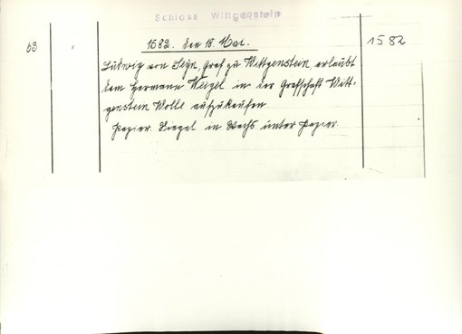 | Benutzungsort | Fürstliches Archiv zu Sayn-Wittgenstein-Hohenstein | |||||||