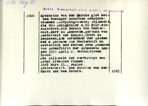| Bestand | Westerholt-Westerholt, Urkunden | alle Regesten |