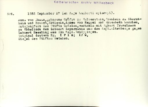| Bestand | Möllenbeck, Haus, Urkunden | alle Regesten |
