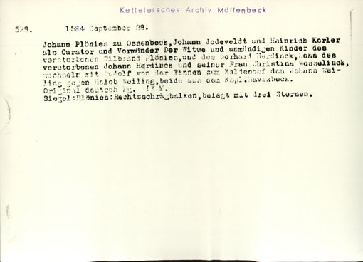 | Bestand | Möllenbeck, Haus, Urkunden | alle Regesten |
