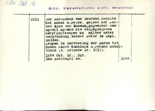 | Bestand | Westerholt-Westerholt, Urkunden | alle Regesten |