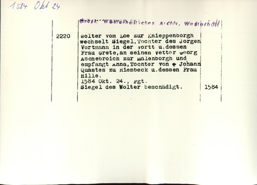 | Bestand | Westerholt-Westerholt, Urkunden | alle Regesten |