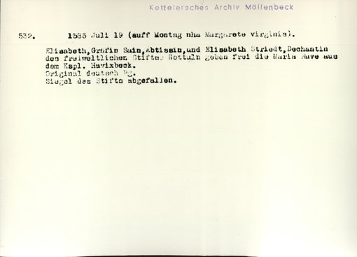 | Bestand | Möllenbeck, Haus, Urkunden | alle Regesten |