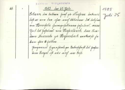 | Benutzungsort | Fürstliches Archiv zu Sayn-Wittgenstein-Hohenstein | |||||||