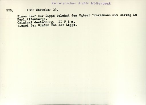 | Bestand | Möllenbeck, Haus, Urkunden | alle Regesten |
