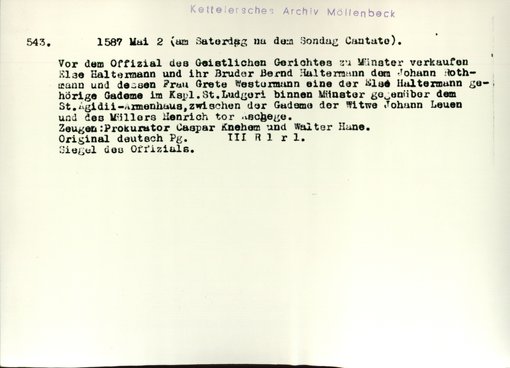 | Bestand | Möllenbeck, Haus, Urkunden | alle Regesten |