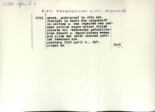 | Bestand | Westerholt-Westerholt, Urkunden | alle Regesten |