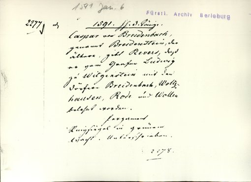 | Archiv | Berleburg, Fürstliches Archiv |
