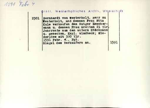 | Bestand | Westerholt-Westerholt, Urkunden | alle Regesten |