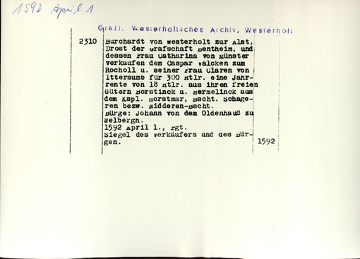 | Bestand | Westerholt-Westerholt, Urkunden | alle Regesten |