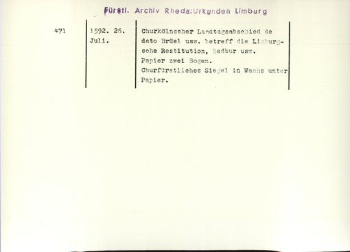 | Bestand | Limburg, Urkunden | alle Regesten |
