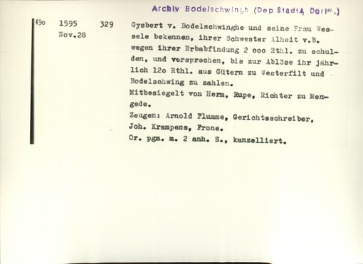 | Bestand | Bodelschwingh, Urkunden | alle Regesten |
