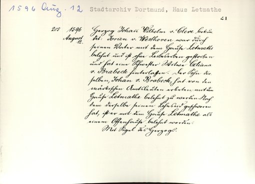 | Bestand | Letmathe, Haus, Urkunden | alle Regesten |