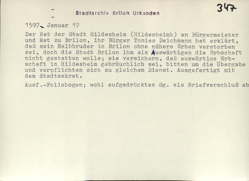 | Benutzungsort | Stadtarchiv Brilon | |||||||