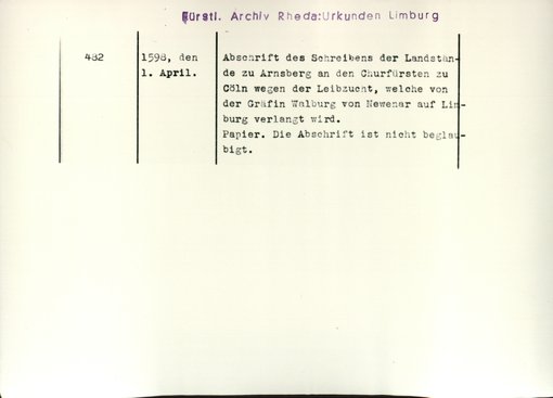 | Bestand | Limburg, Urkunden | alle Regesten |