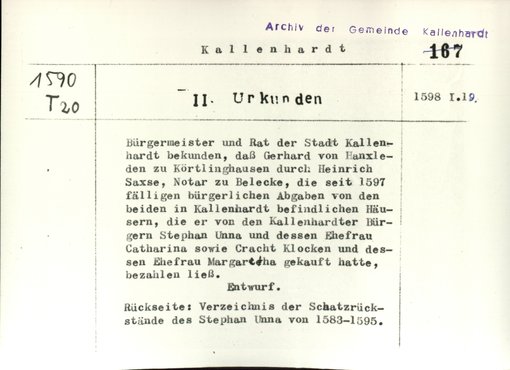 | Bestand | Kallenhardt, Stadt, Urkunden | alle Regesten |