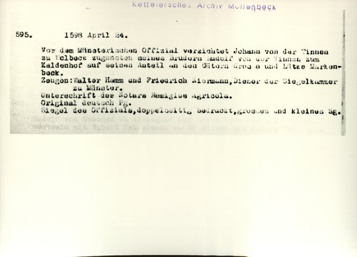 | Bestand | Möllenbeck, Haus, Urkunden | alle Regesten |