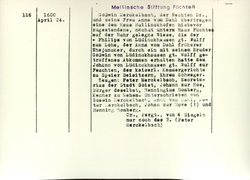 | Bestand | Füchten, Haus, Urkunden | alle Regesten |