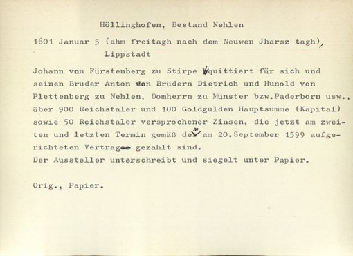 | Bestand | Nehlen, Urkunden | alle Regesten |
